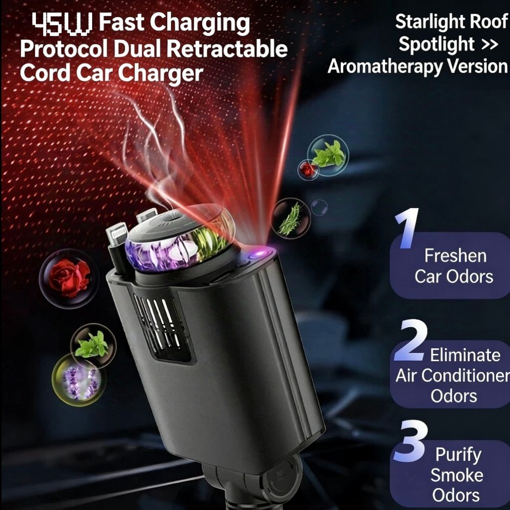 Compact and easy to use, this chargerfeatures a retractabledesign.lt allows for simple installationand removal, ensuring aseamless charging experience. Perfectfor any car interior space,it adds minimal clutter.