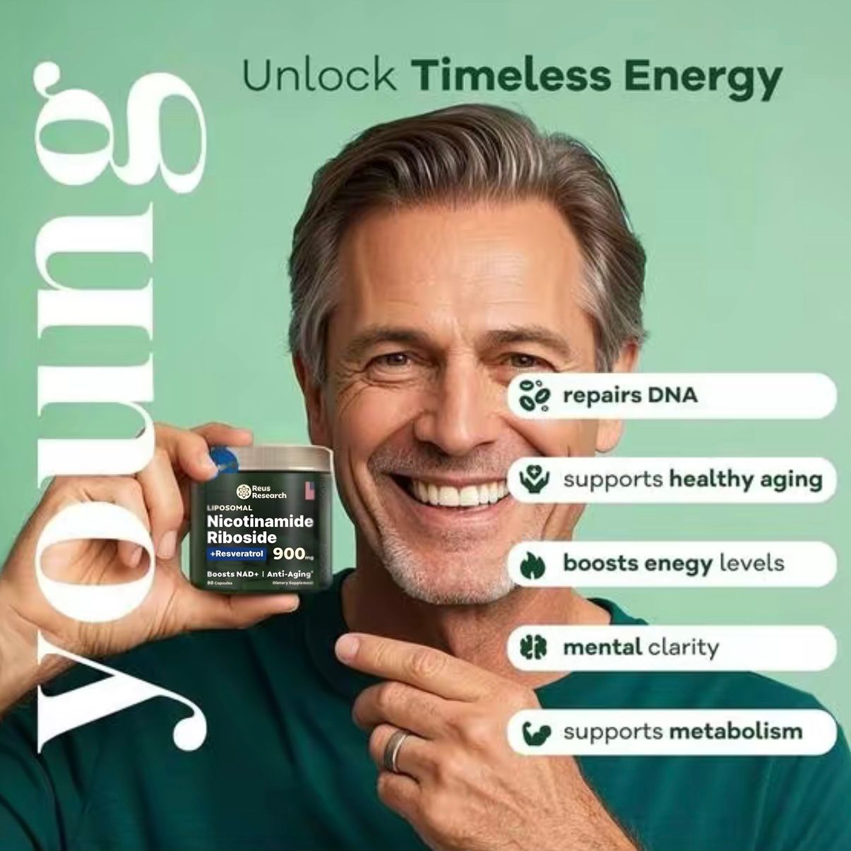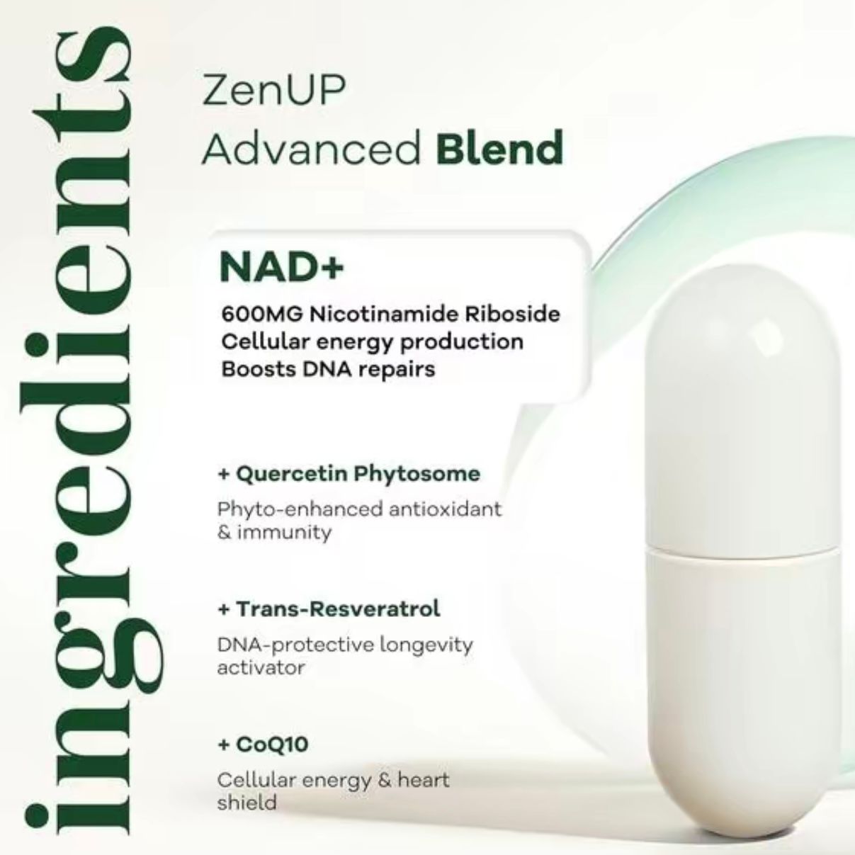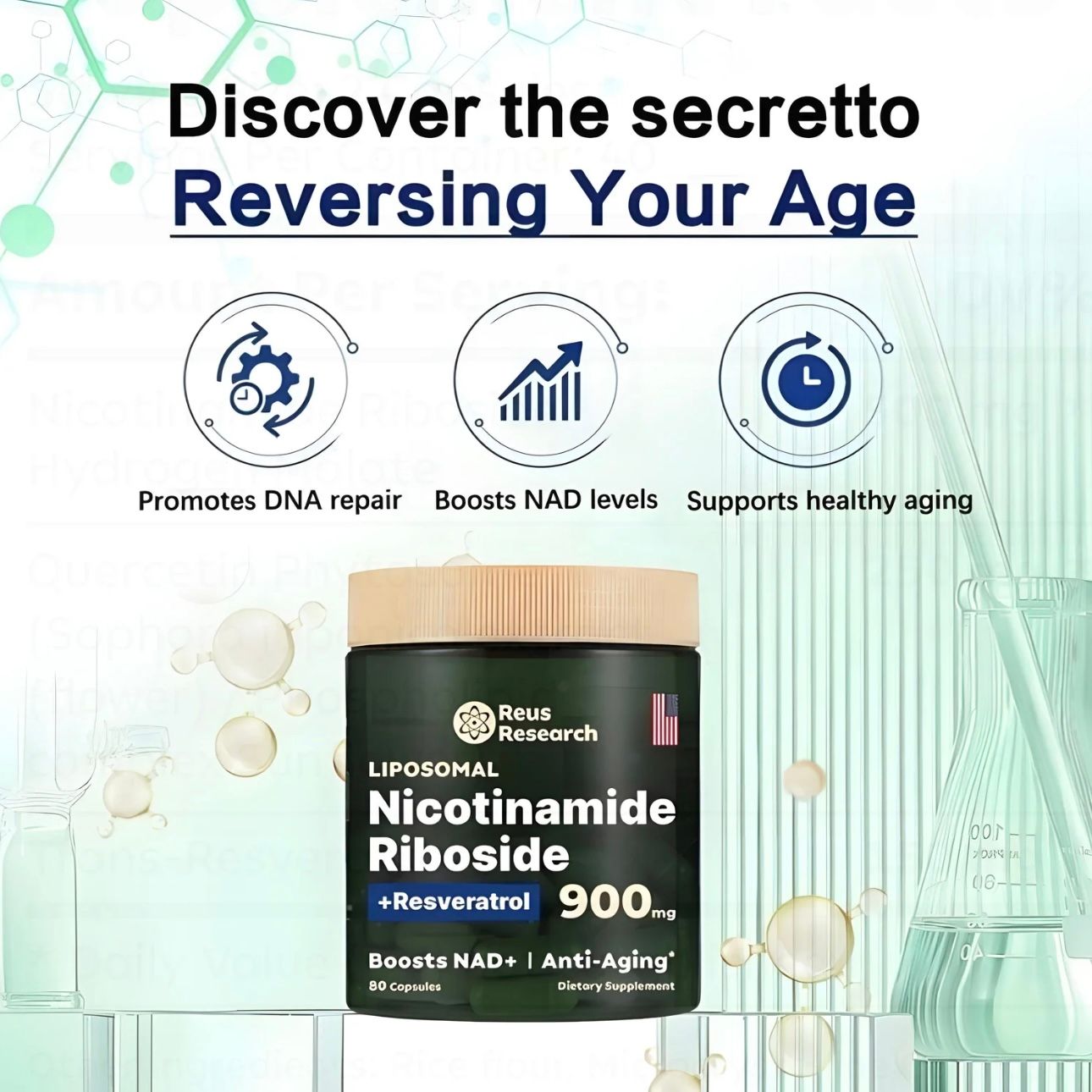 🌿Radiant Skin & Daily Vitality: A unique blend of antioxidants andNAD+ precursors to help maintain skin wellness, energy production,and overall vitality.