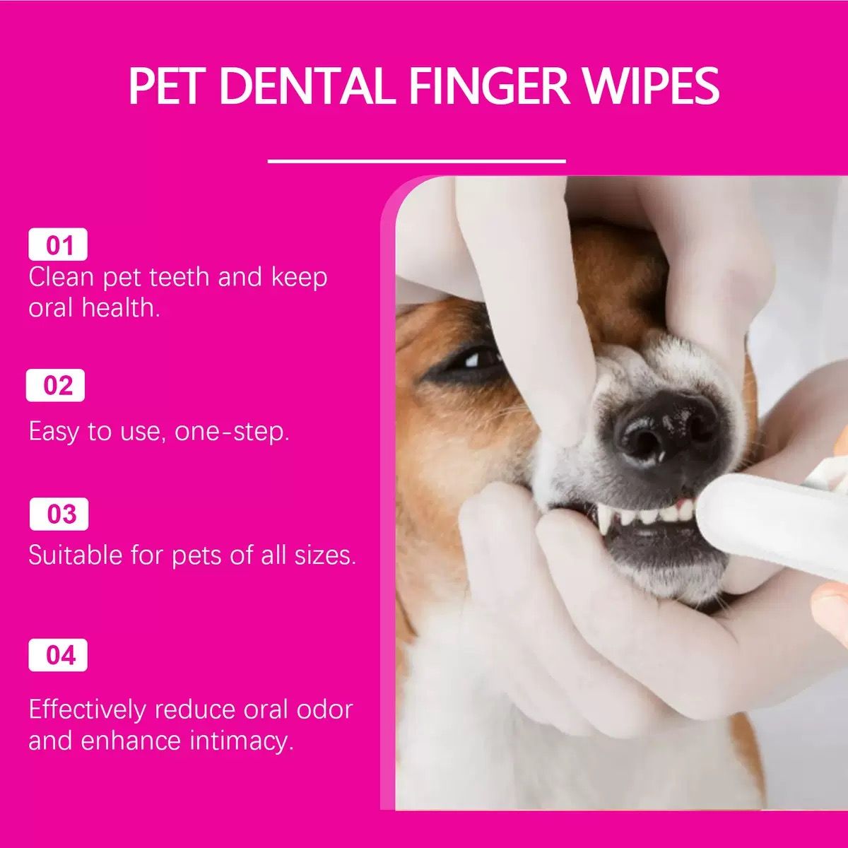 Pet Care Finger Wipes for Dental, Ear, and Eye Hygiene. Grooming Cleaner