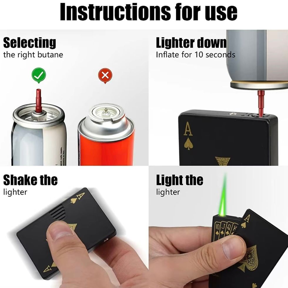 [Cool Design Widely Versatile】 This Cool design lighter ismade process with multi-layer electroplating process, pokerpattern on the front, no fading.Butane Refillable Lighter isPerfect as outdoor activities such as hiking, bonfire, campingtrips, camping stove, make fire outdoors and so on, and alsoUseful Lighting your Fireplace, Candles, for Hobby, Arts andCrafts Projects, for Multiple Camping Applications.