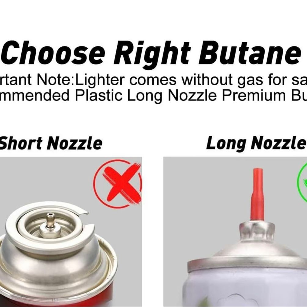 [Butane Refillable & Windproof ] This butane lighter withuniversal refill valve,Portable size, easy to carry without takingup space. (Note: there will be no leakage of white gas innormal filling, if white gas appears, it proves that the culinarytorch is full).
