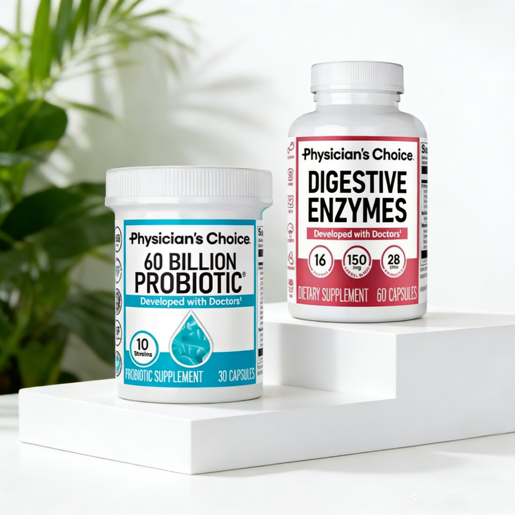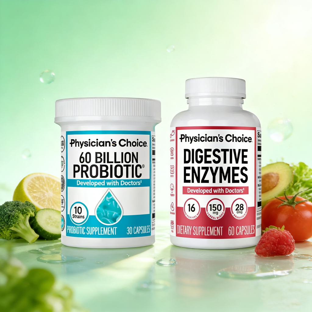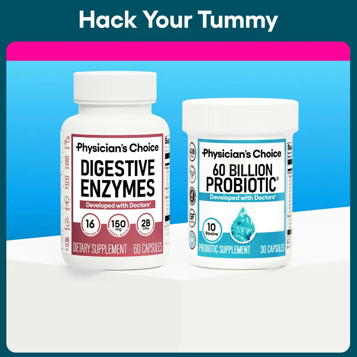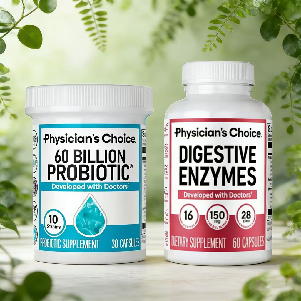 🍃Physician's Choice Hack Your Tummy Bundle combines 60Billion Probiotic and Digestive Enzymes for ultimate dailydigestive and mealtime discomfort support.