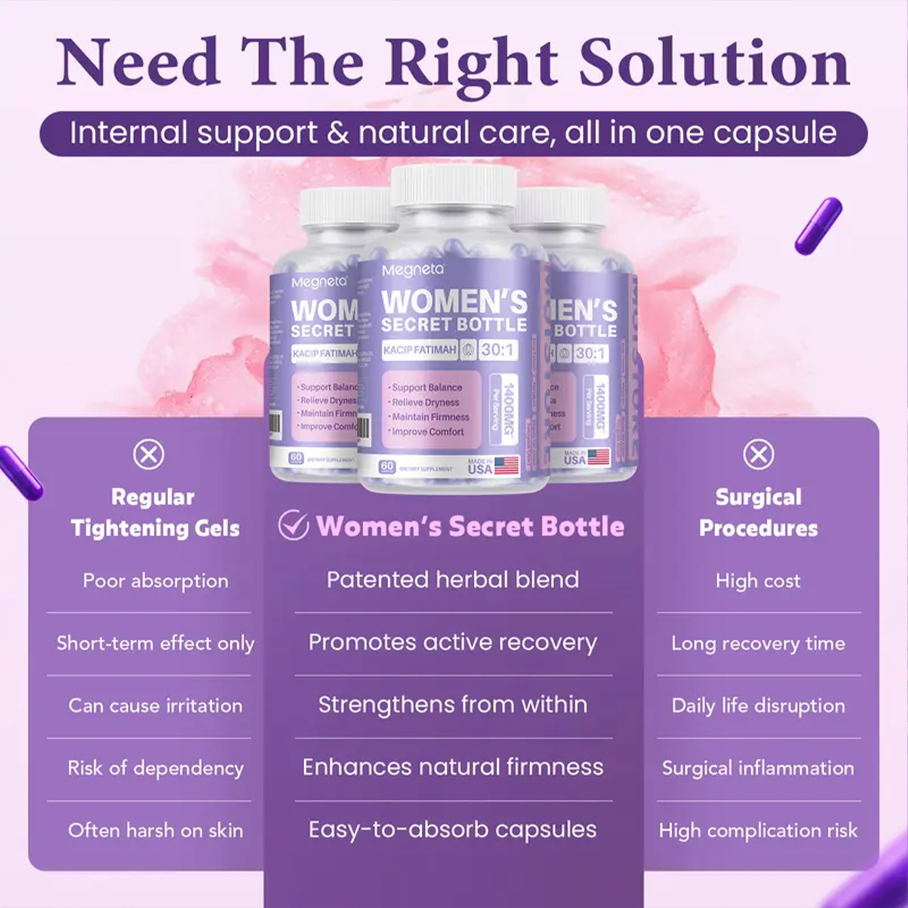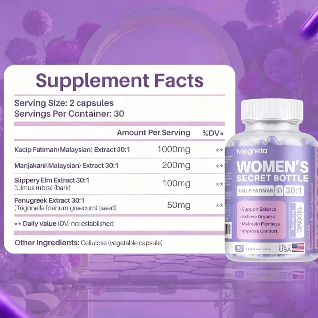 Women'S Secret Bottle- 60 Tablets - Healthcare | Kacip Fatimah 1000MG |Plus with manjakan & Slippery Elm & Fenugreek
